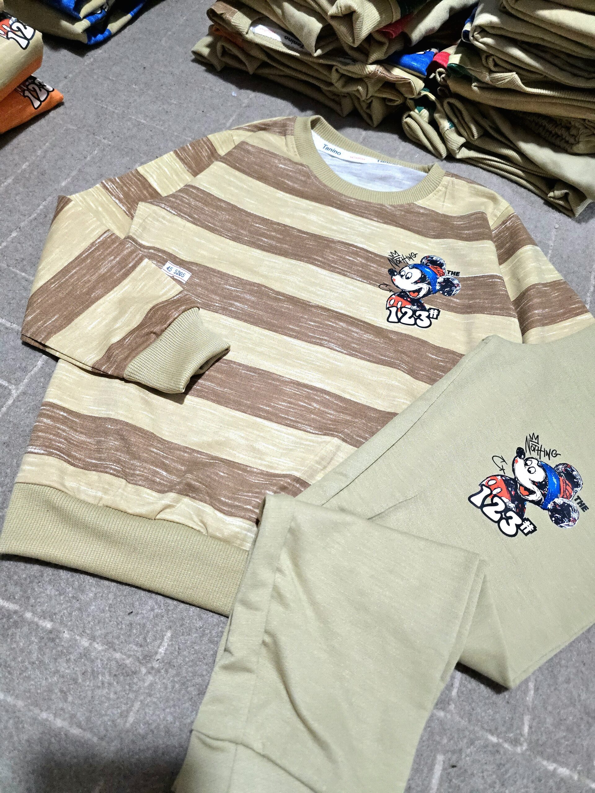 سایز60قد بلوز60,پهنا بلوز42,قذ آستین از یقه تا مچ61,قد شلوار91,قد فاق29,دور کمر تا 96کش میاد